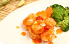 选用新鲜海虾,佐以宫保汁滑制而成,荔枝味微辣。海虾含蛋白质、脂肪、维生素A、B1、B2和烟酸、钙、磷、铁等成分。